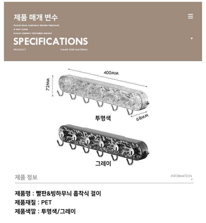 | 품명 및 모델명 | 빙하무늬 흡착식 걸이 | 인증/허가 사항 | 상품 상세페이지 참조 |