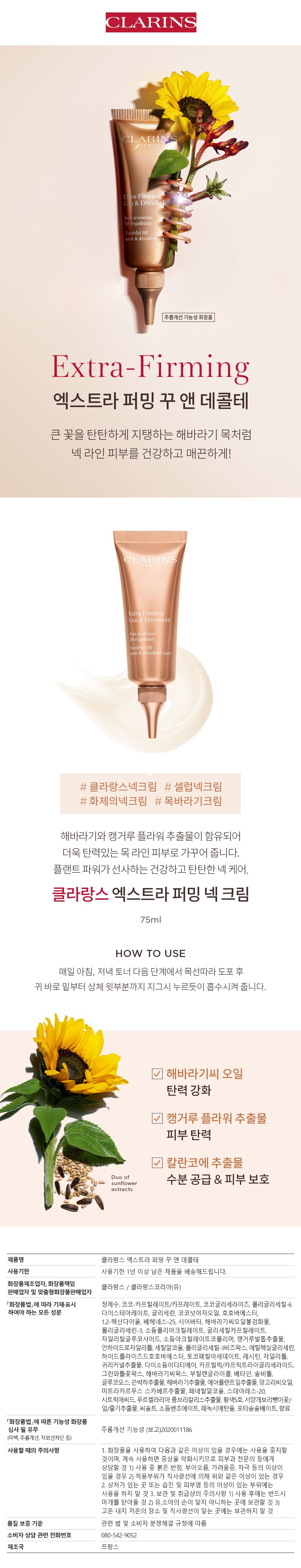 | 화장품제조업자, 화장품책임판매업자 및 맞춤형화장품판매업자 | 클라랑스/클라랑스코리아(유) | 제조국 | 프랑스 |