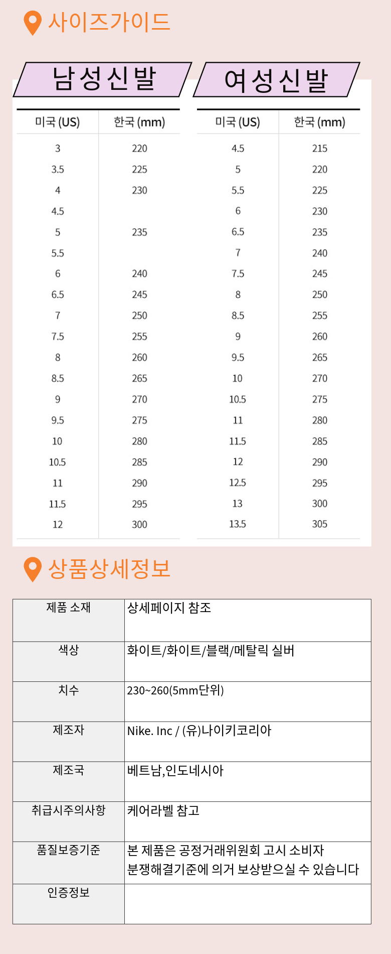 | 제조국 | 상품 상세페이지 참조 | 취급시 주의사항 | 상품 상세페이지 참조 |