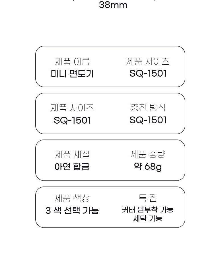 | 품명 및 모델명 | SQ-1501 미니 전기면도기 | KC 인증정보 | KC 인증이 있습니다:XU101361-19007A |