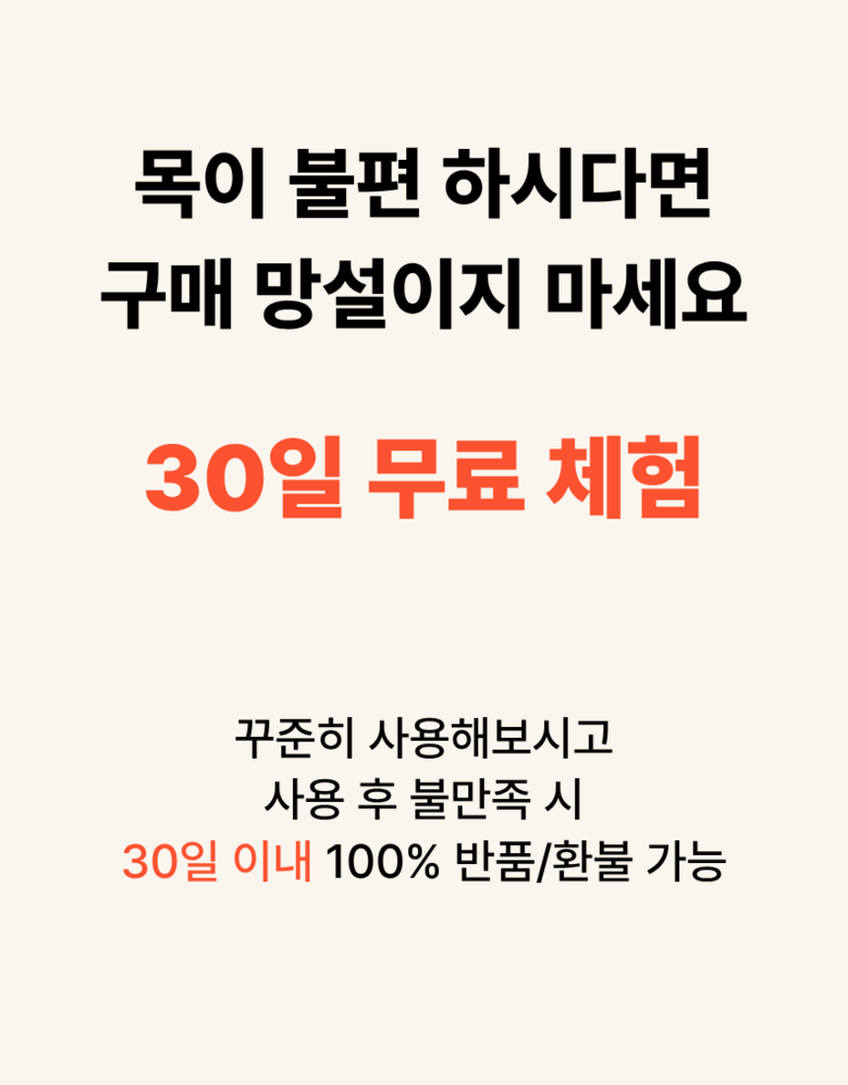 - ㆍ모니터 해상도의 차이로 인해 색상이나 이미지가 실제와 달라, 고객이 단순 변심으로 교환/반품을 무료로 요청하는 경우