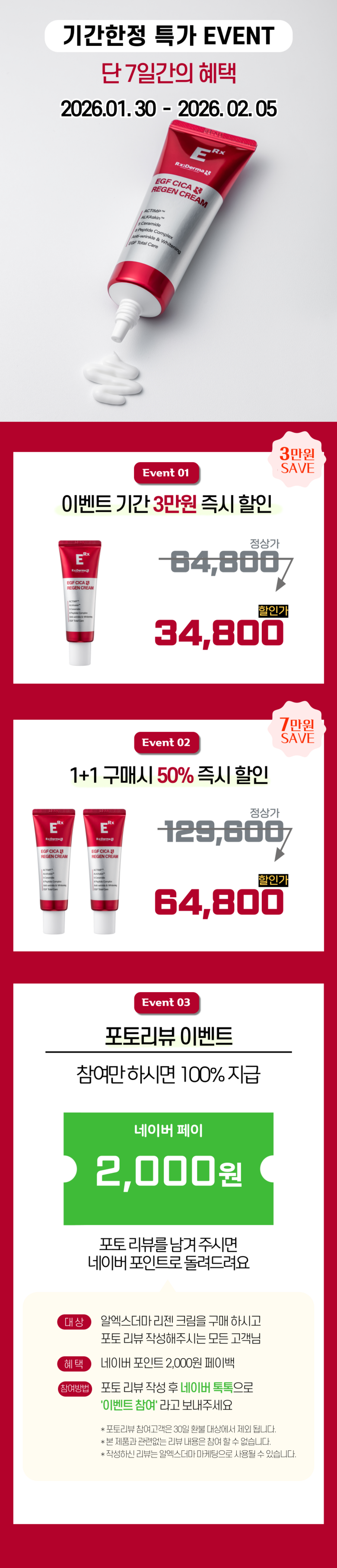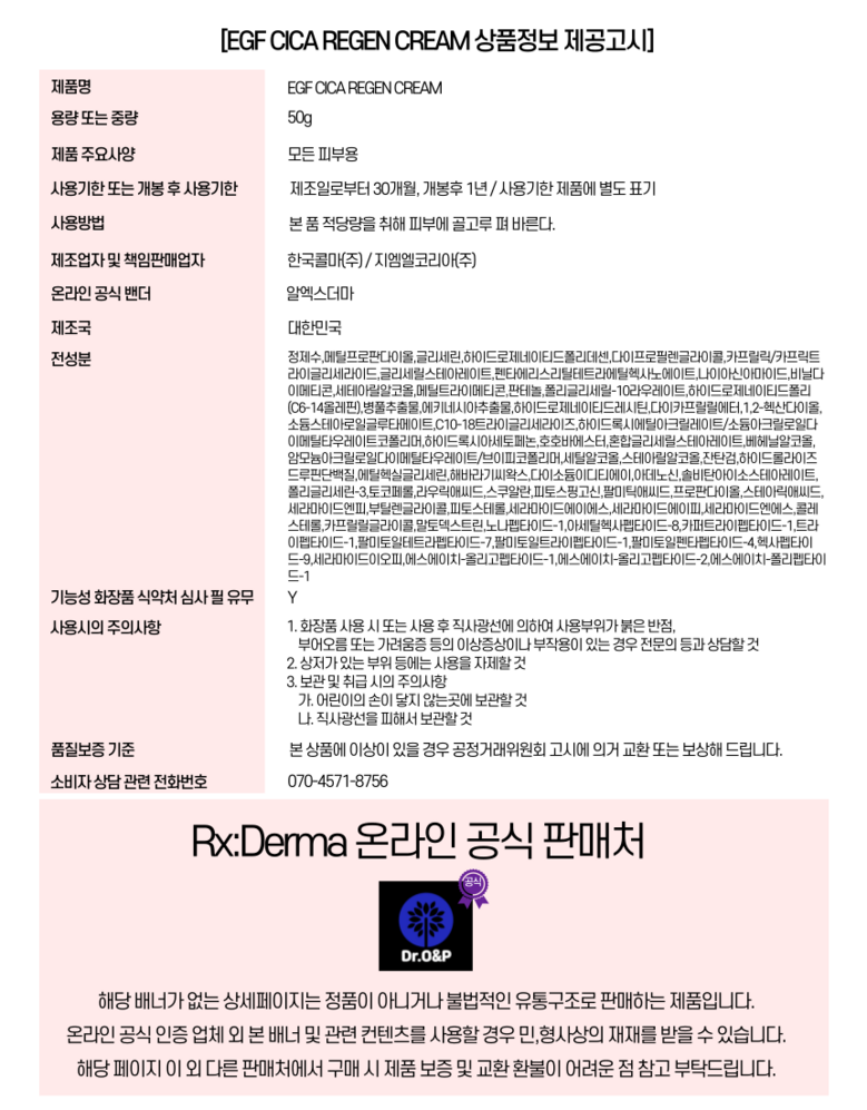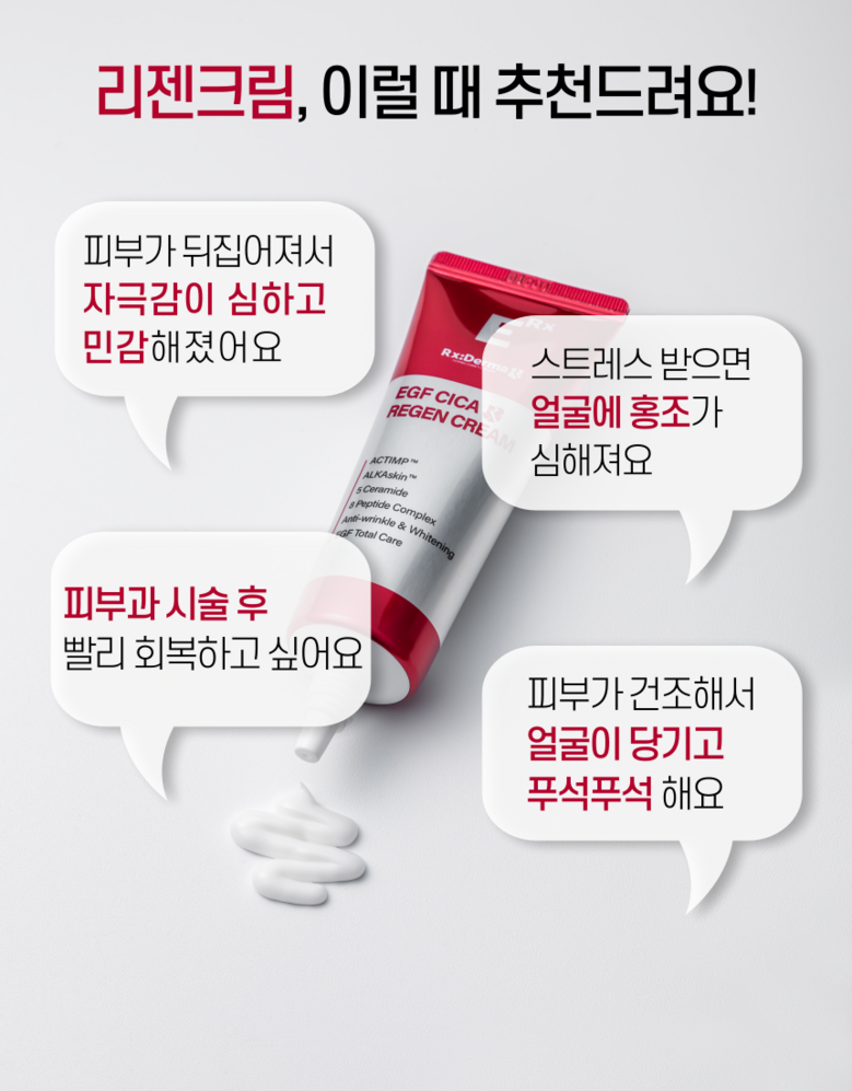 알엑스더마 EGF 시카 리젠 크림 세라마이드 판테놀 병풀 피부과 레이저 재생관리 후 진정크림, 50ml, 2개