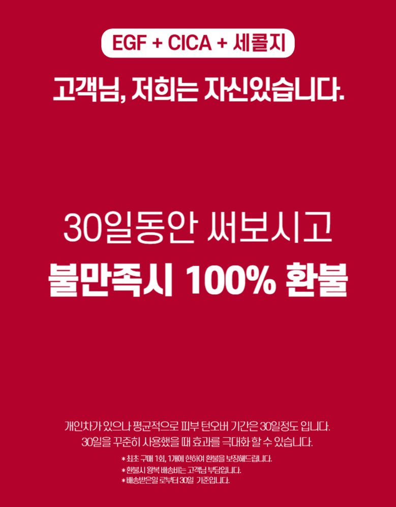 | 교환/반품 신청 기준일 | ㆍ단순변심에 의한 로켓배송 상품의 교환/반품은 제품 수령 후 30일 이내까지, 교환/반품 제한사항에 해당하지 않는 경우에만 가능 (교환/반품 비용 고객부담) ㆍ상품의 내용이 표시·광고의 내용과 다른 경우에는 상품을 수령한 날부터 3개월 이내, 그 사실을 안 날 또는 알 수 있었던 날부터 |