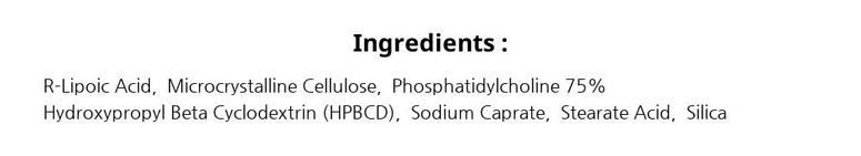 R-리포산은 미토콘드리아 효소의 보조 인자로 강력한 항산화제이며, 일반 리포산보다 10배 더 효과적인 것으로 나타났습니다. 하이테크의 R-리포산은 사이클로솜 기술을 통해 알파 리포산 흡수를 극대화하였습니다. 이러한 강력한 전달 시스템을 통해 흡수율이 2.8배 증가하며 모든 소화 문제를 견뎌 높은 생체이용률을 보입니다.