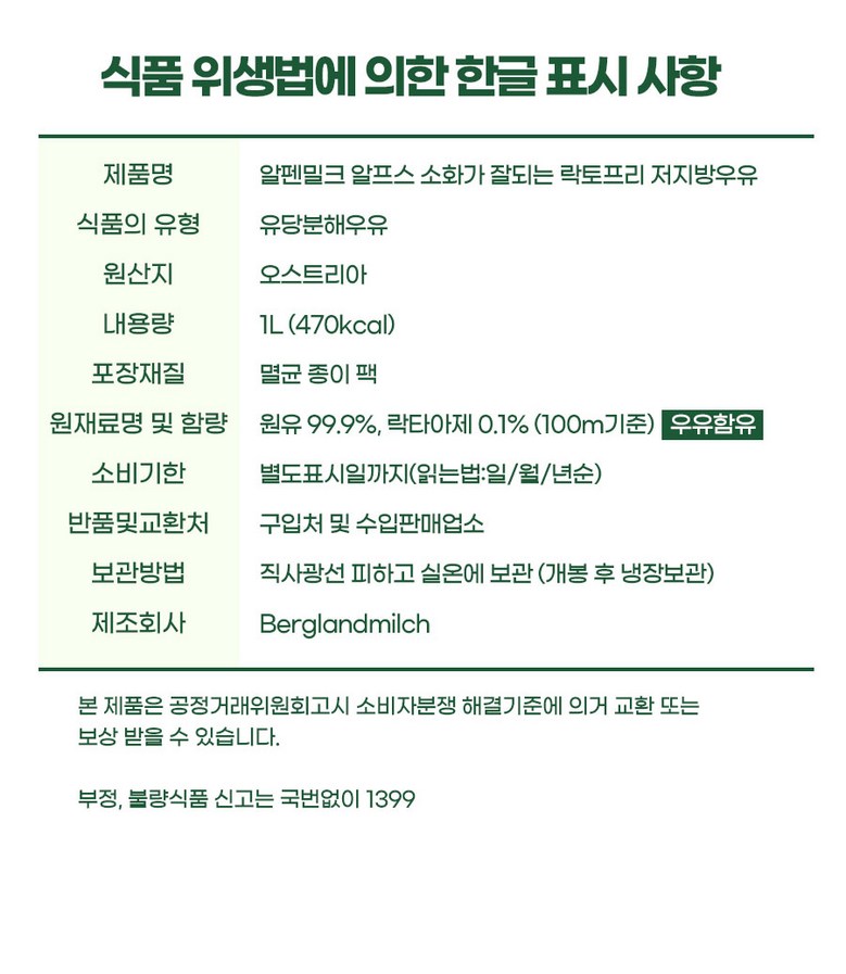 | 제조연월일, 소비기한 또는 품질유지기한 | 상품 상세페이지 참조 | 세부 품목군별 표시사항 | 상품 상세페이지 참조 |
