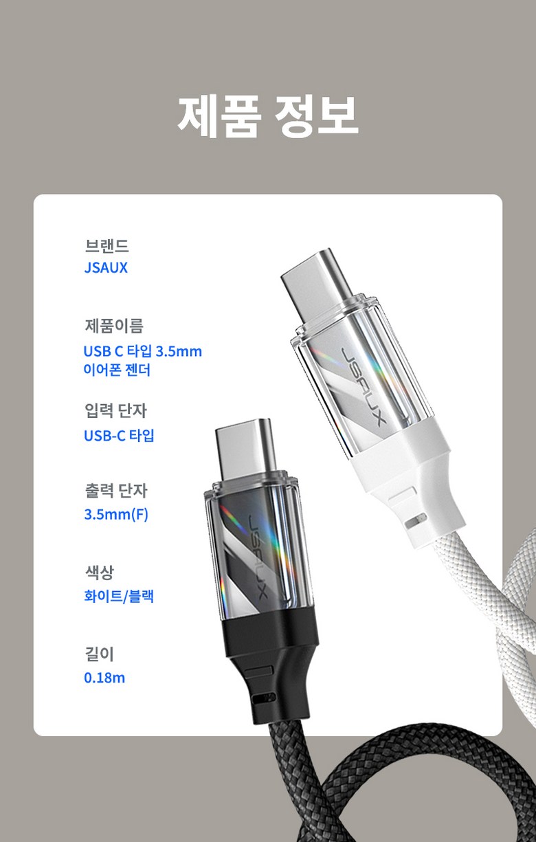 | 품명 및 모델명 | JSAUX | KC 인증정보 | 상품이 KC,EMC 대상인 경우, 본품 및 구성품 모두 인증번호 또는 인증번호가 없는 경우 KC 마크 여부를 기재해주세요. (대상이 아닌경우 "해당없음" 기재) |