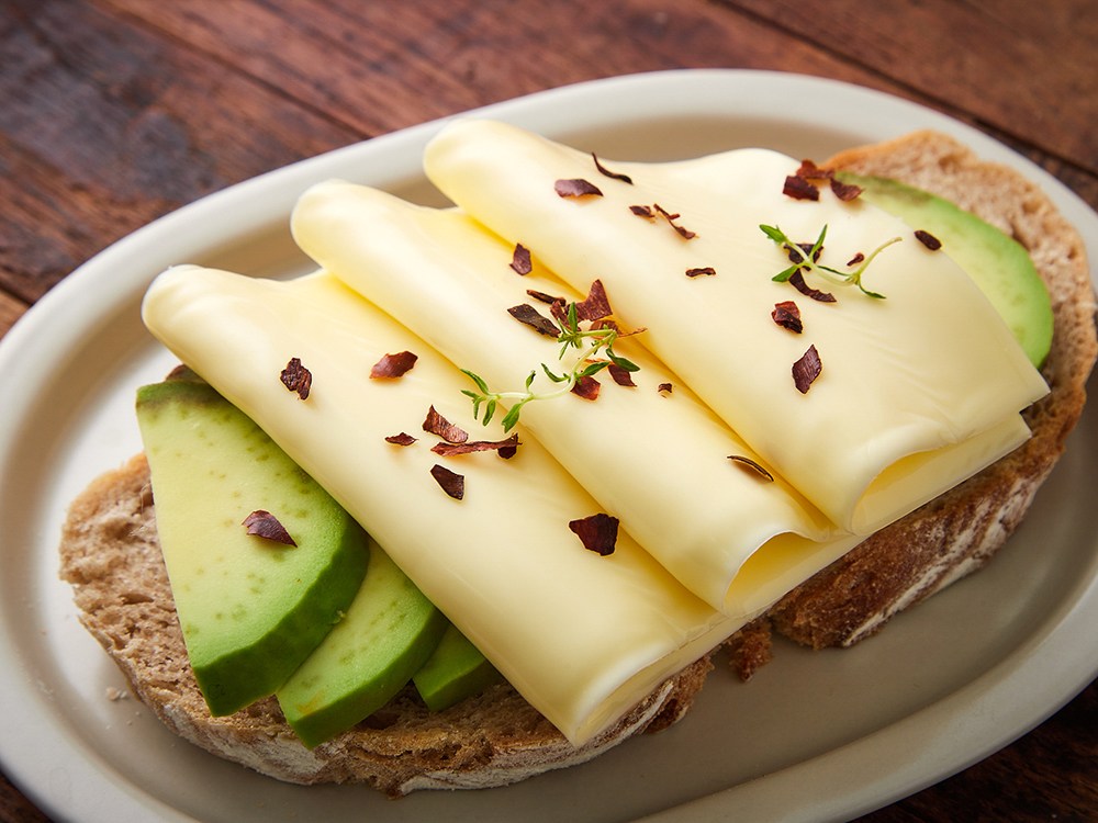 부드러운 고단백 치즈를 소개할게요. 체다 치즈와 고다 치즈로 만들어 고소함이 진합니다. 얇게 슬라이스 되어 있으니, 간편하게 활용해보세요. 그대로 간식으로 드셔도 좋고, 담백한 빵에 올려 토스트를 만들어도 훌륭해요.