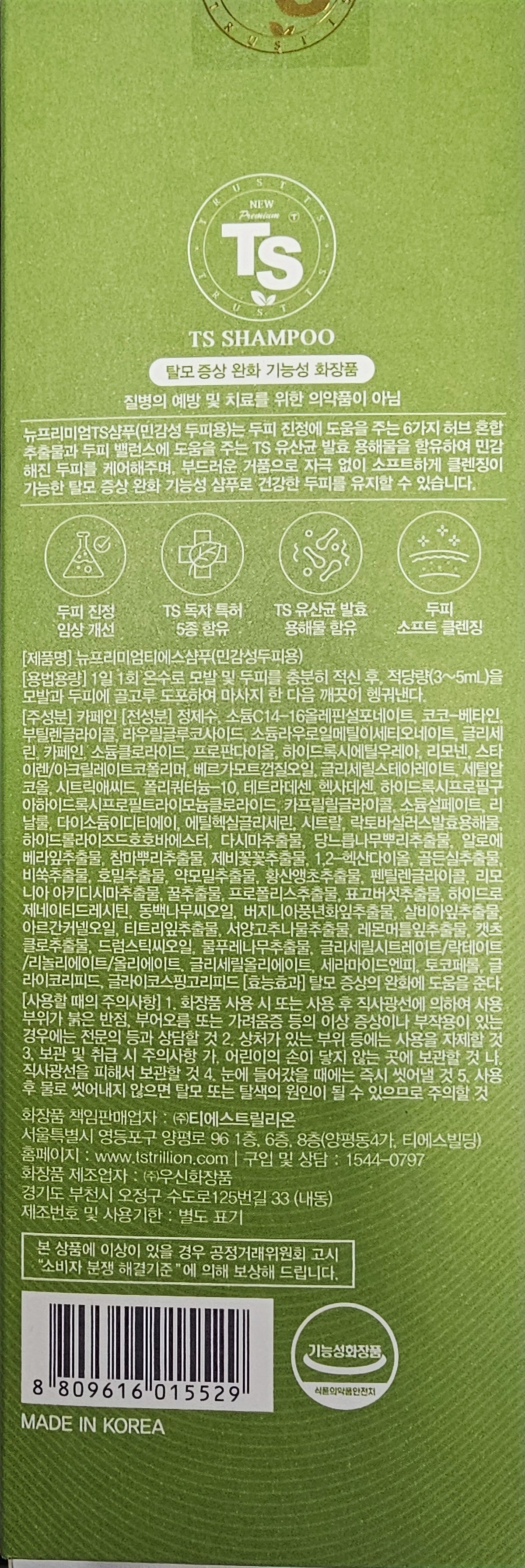 | 사용기한 또는 개봉 후 사용기간 | 본 상품은 해당 물류센터 직발송 상품인 관계로 제조연월일 및 사용기한 정보가 매번 변경되므로 상단 사용기한 정보를 참고해 주세요. | 사용방법 | 1일 1회 온수로 모발 및 두피를 충분히 적신 후 , 적당량을 모발과 두피에 골고루 도포하여 마사지 한 다음 깨끗이 헹궈낸다. |