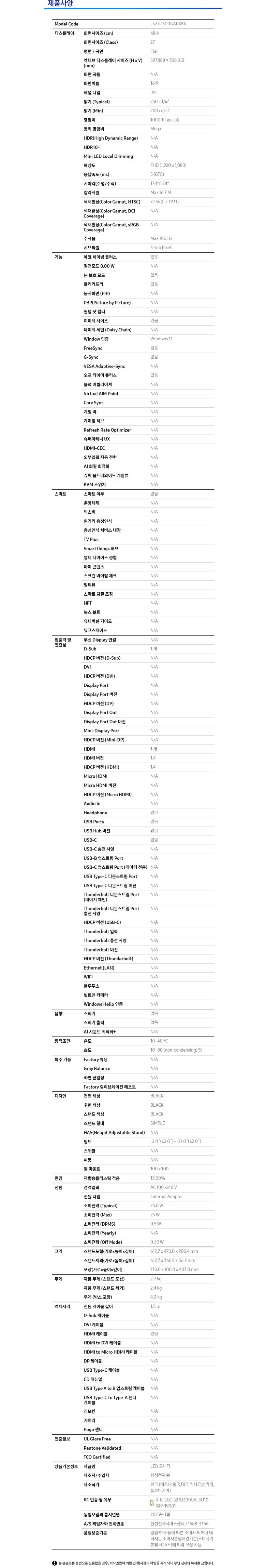 | 정격전압, 소비전력 | 상품 상세페이지 참조 | 에너지소비효율등급 | 상품 상세페이지 참조 |