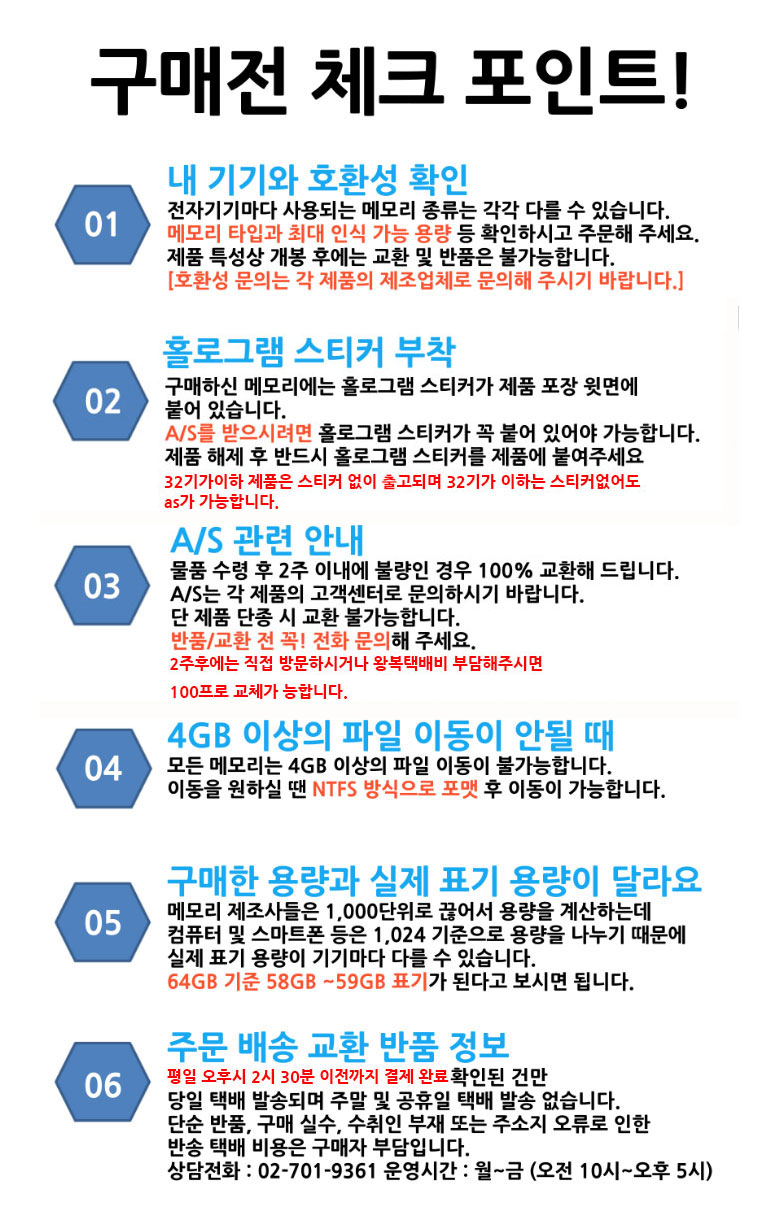 - ㆍ교환/반품에 관한 일반적인 사항은 판매자가 제시사항보다 관계법령이 우선합니다.