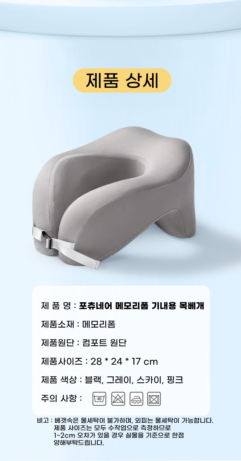 | 품명 및 모델명 | 메모리폼 기내용 목베개 | 인증/허가 사항 | 해당없음 |