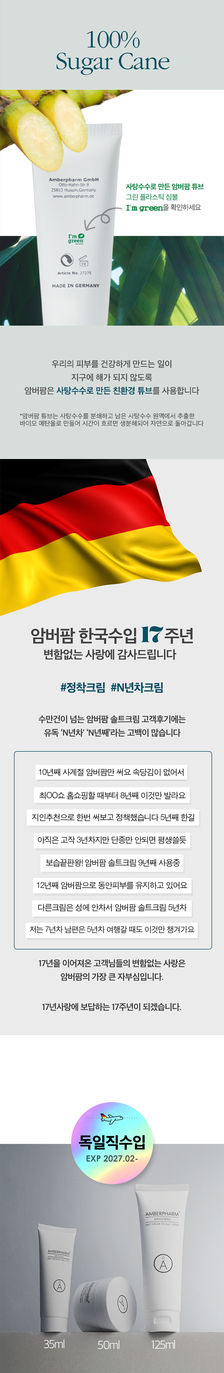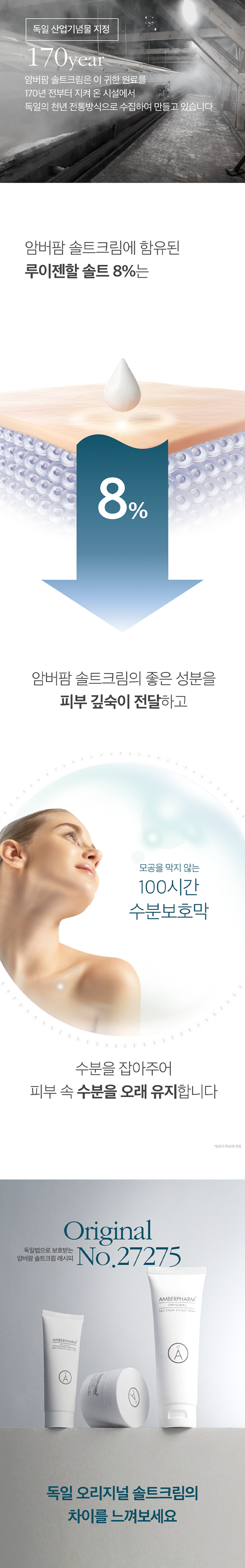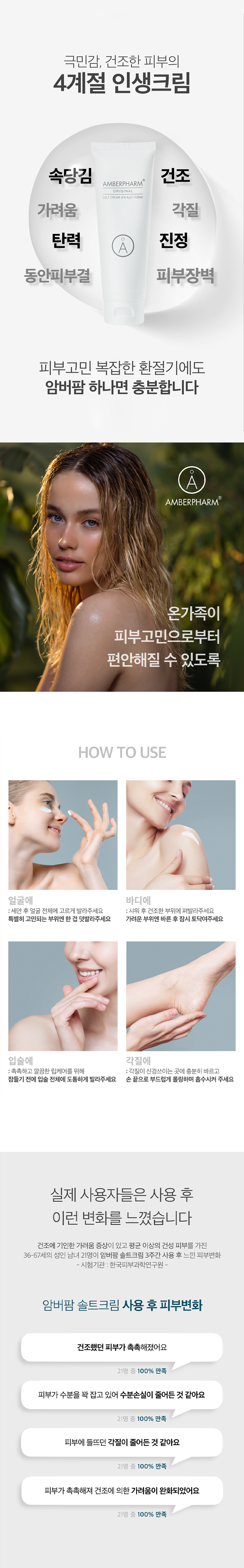 | 용량(중량) | 35ml | 제품 주요 사양 | 약산성 보습 솔트크림, 유해한 성분배제, 영유아 안전성 더마테스트 최고등급으로 모두가 안심하고 사용가능한 온가족 크림 , 100시간 수분홀딩, 건조에의한 가려움 완화 |