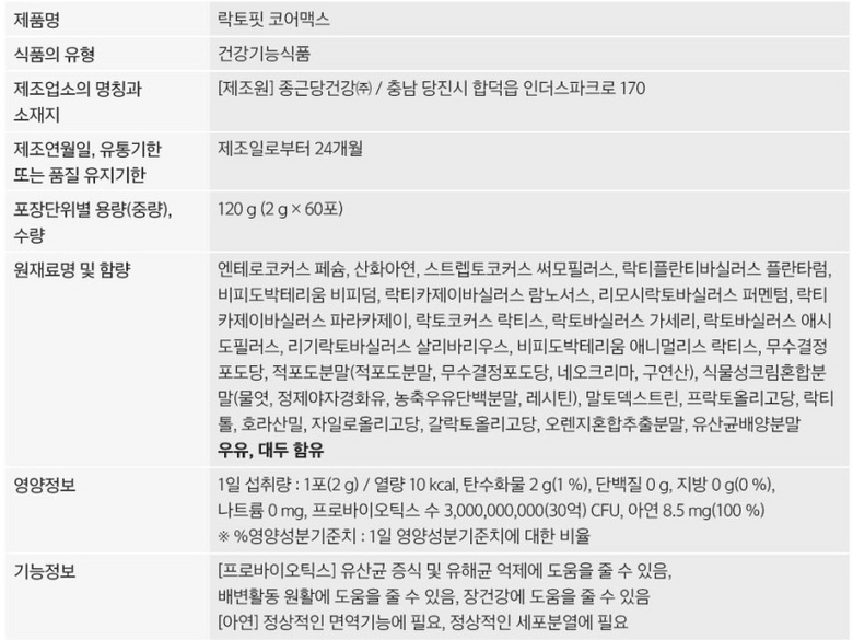 | 원료명 및 함량 | 상품 상세페이지 참조 | 영양정보 | 상품 상세페이지 참조 |
