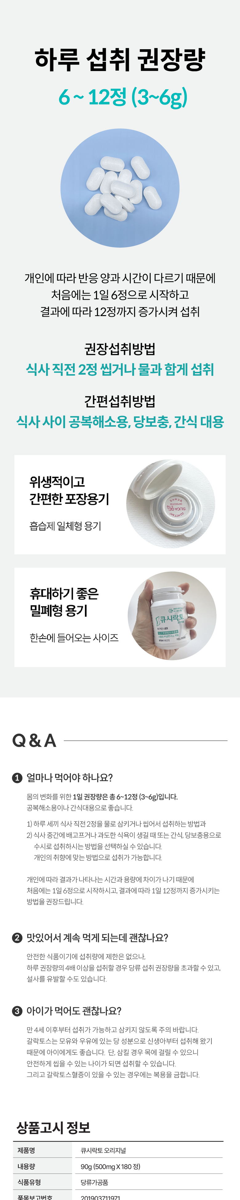 | 제품명 | 큐시락토 오리지널 | 식품의 유형 | 당류가공품 |