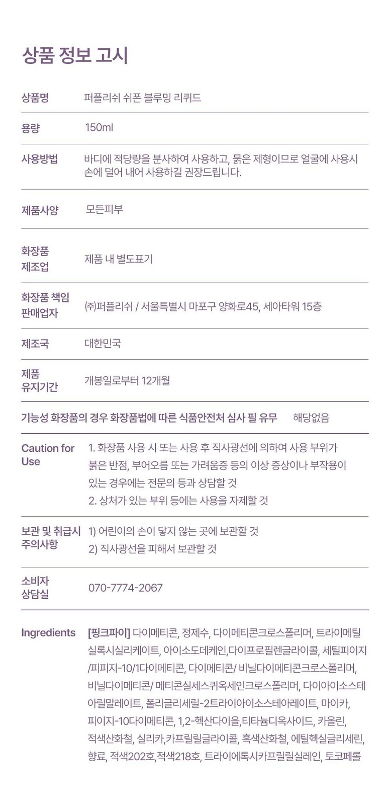 | 화장품제조업자, 화장품책임판매업자 및 맞춤형화장품판매업자 | 상품 상세페이지 참조 | 제조국 | 상품 상세페이지 참조 |