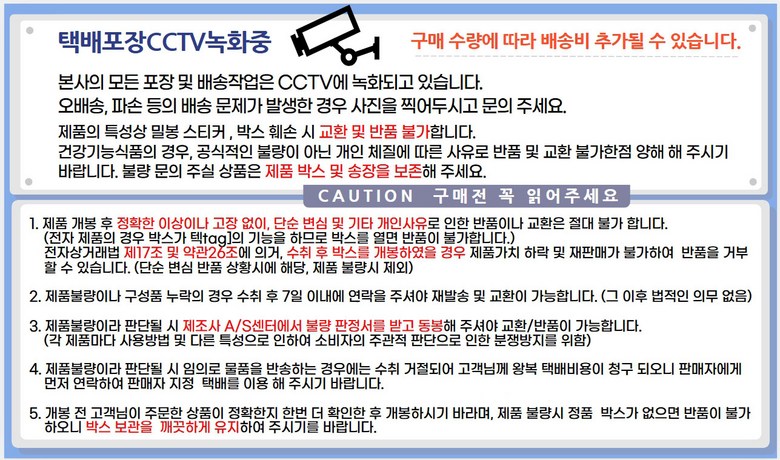 - ㆍ교환/반품에 관한 일반적인 사항은 판매자가 제시사항보다 관계법령이 우선합니다.