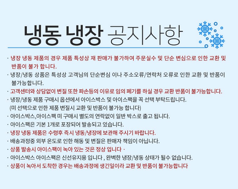 - ㆍ교환/반품에 관한 일반적인 사항은 판매자가 제시사항보다 관계법령이 우선합니다.