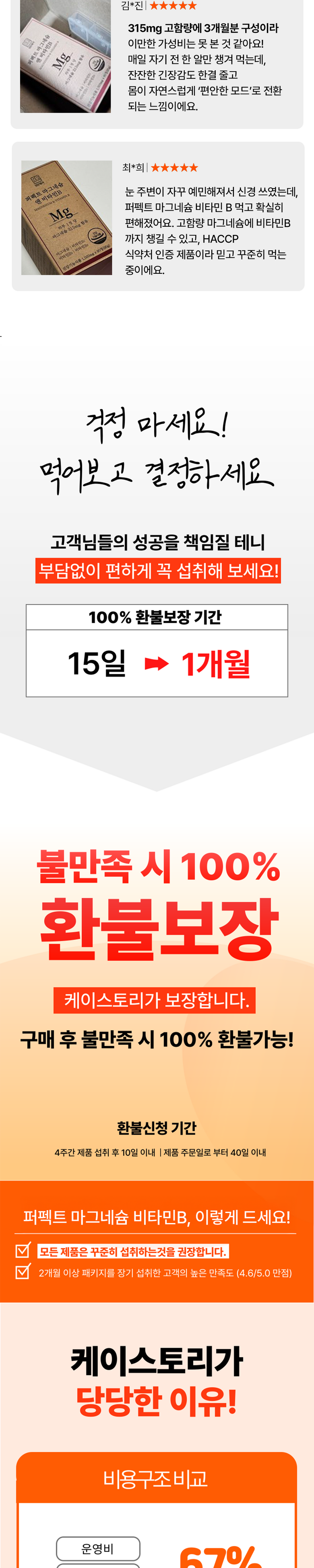 | 교환/반품 신청 기준일 | ㆍ단순변심에 의한 교환/반품은 제품 수령 후 7일 이내까지, 교환/반품 제한사항에 해당하지 않는 경우에만 가능 (배송비용과 교환/반품 비용 왕복배송비 고객부담) ㆍ상품의 내용이 표시·광고의 내용과 다른 경우에는 상품을 수령한 날부터 3개월 이내, 그 사실을 안 날 또는 알 수 있었던 날부터 |