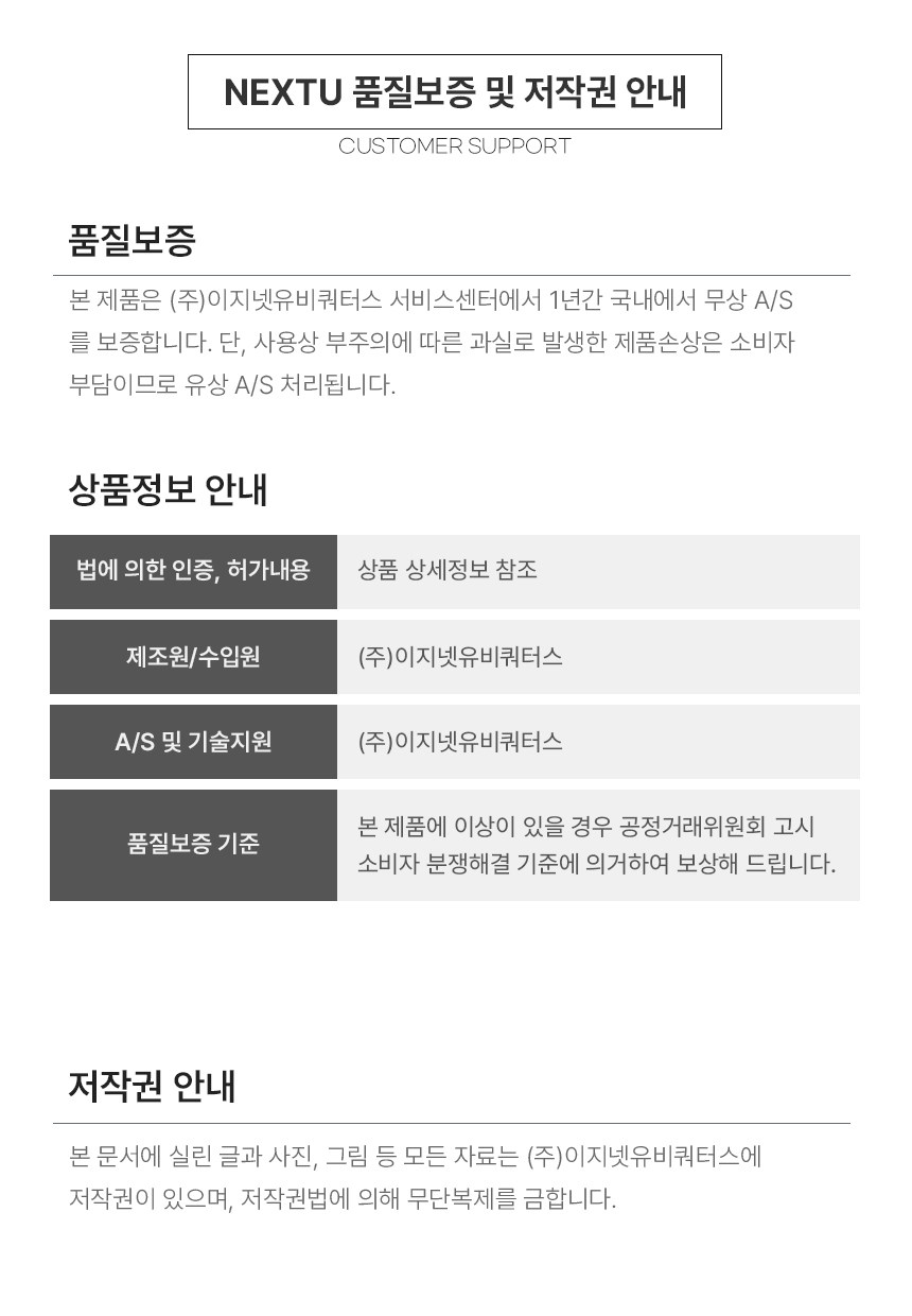 | 제조자(수입자) | (주)이지넷유비쿼터스/(주)이지넷유비쿼터스 | 제조국 | 중국 |