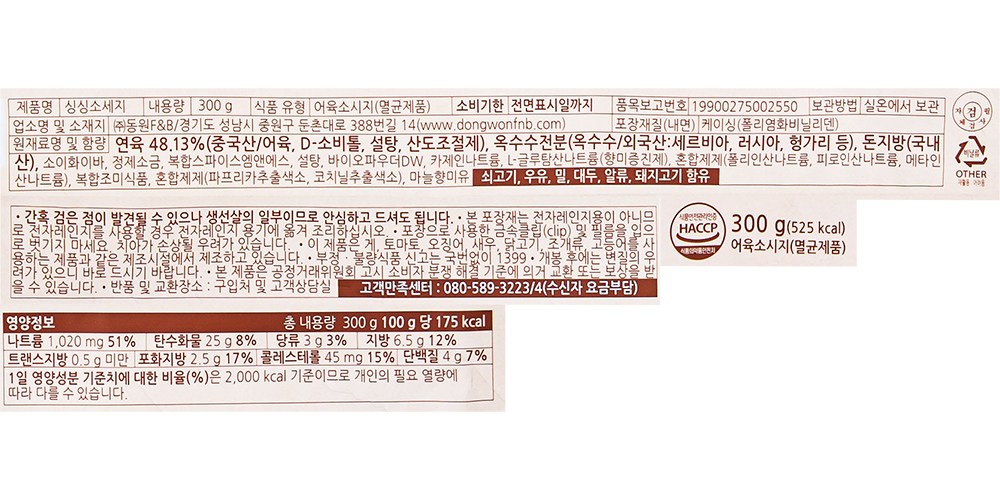 | 포장단위별 내용물의 용량(중량), 수량 | 300g x 6개 | 원재료명 및 함량 | 컨텐츠참조 |