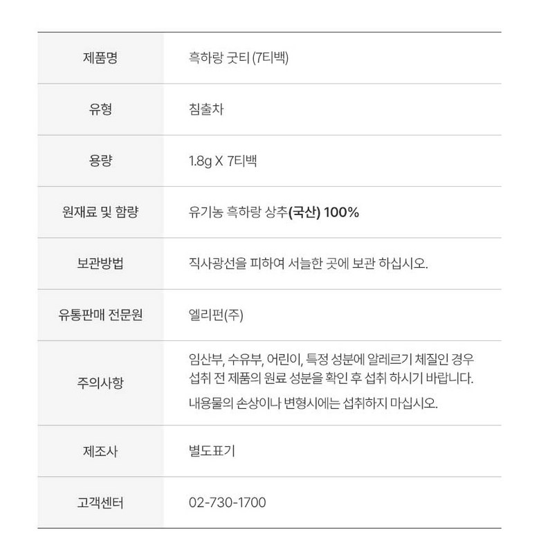 | 제품명 | 굿티 | 식품의 유형 | 침출차 |