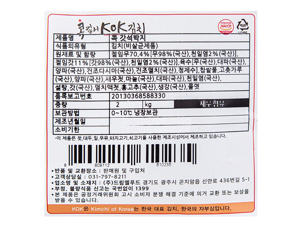 | 포장단위별 내용물의 용량(중량), 수량 | 2kg x 3개 | 원재료명 및 함량 | 컨텐츠 참조 |