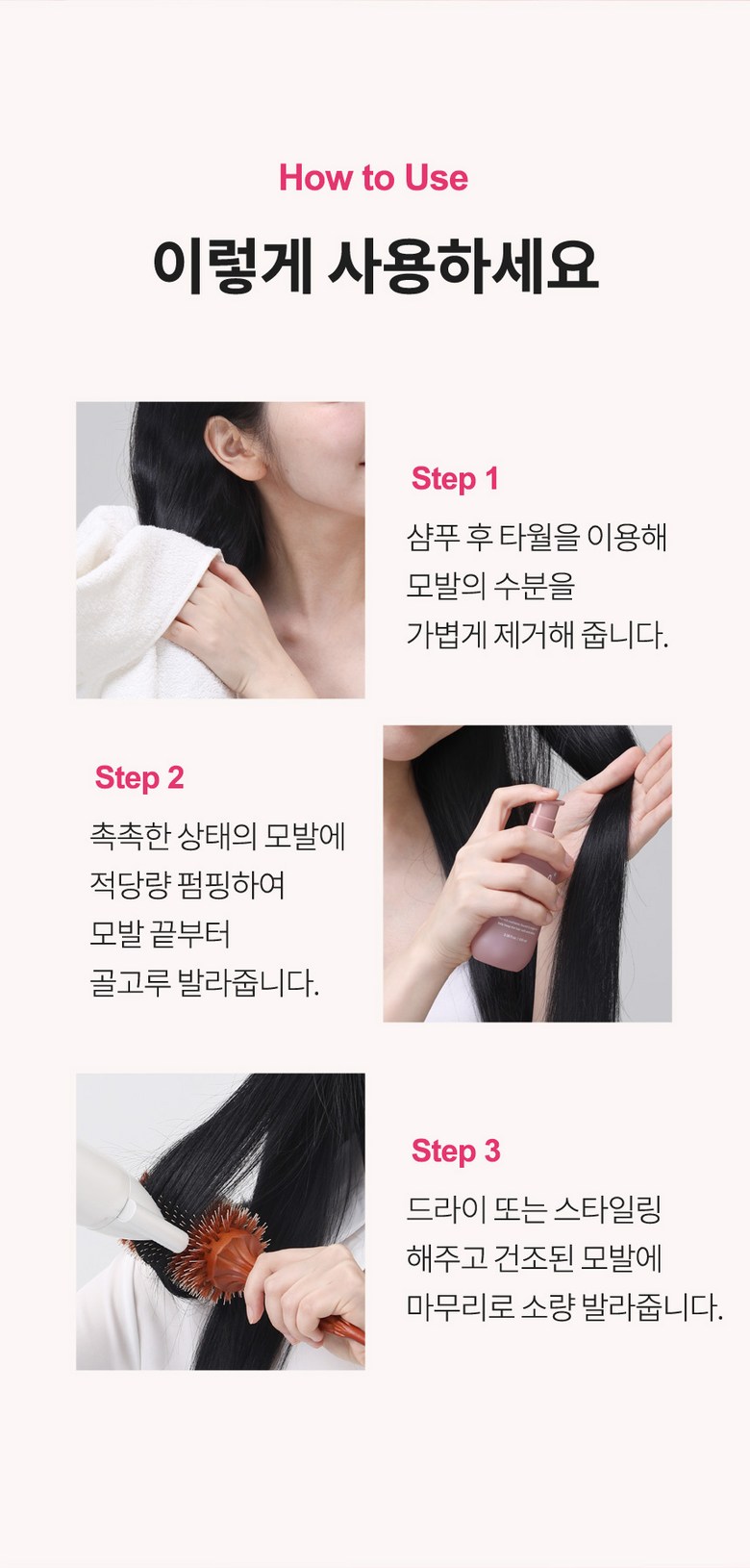 | 사용기한 또는 개봉 후 사용기간 | 제조일로부터_개봉 전 3년 개봉 후 1년 이내 | 사용방법 | 타월 드라이 후 젖은 상태의 모발에 적당량 골고루 바르고 드라이 또는 스타일링 합니다. 건조된 모발에 마무리로 소량 발라주면 더욱 좋습니다. |