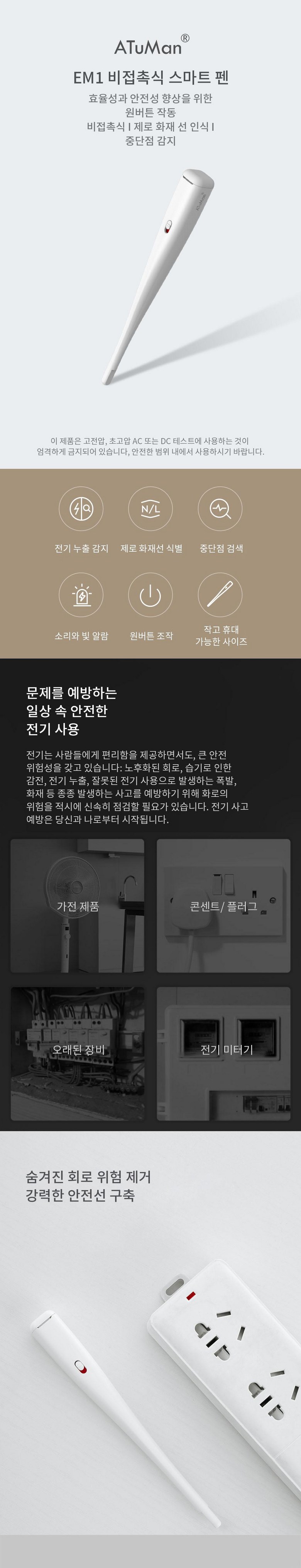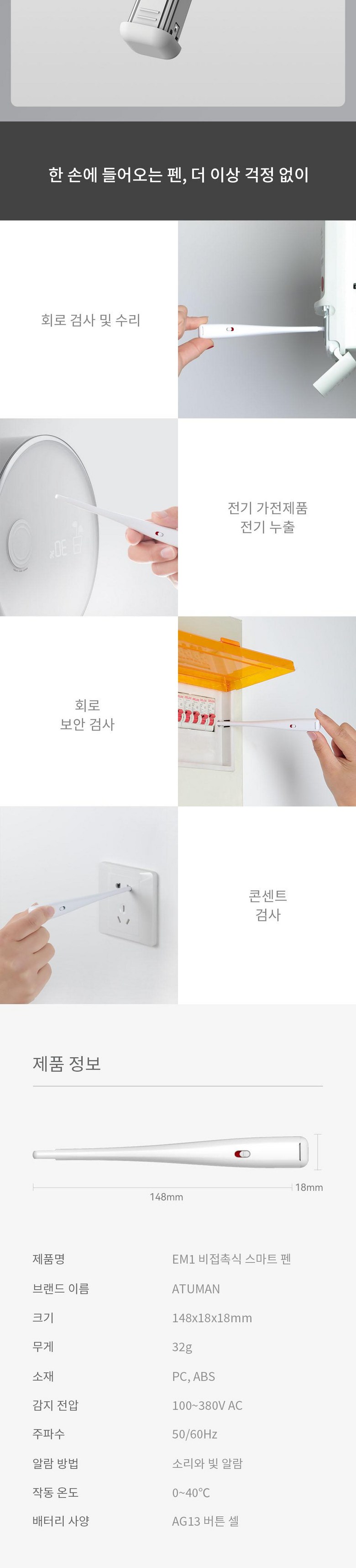 아투맨 EM1 비접촉 스마트 검전기 펜 화이트