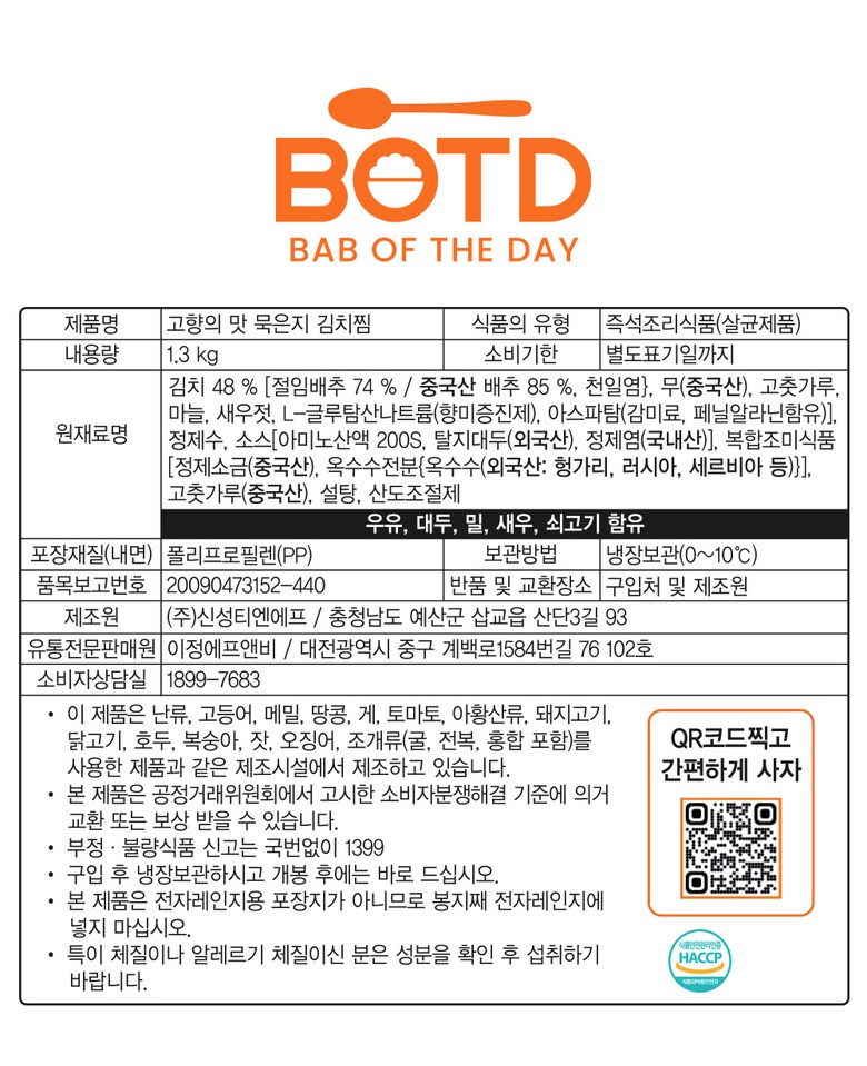 | 제조연월일, 소비기한 또는 품질유지기한 | 상품 상세페이지 참조 | 세부 품목군별 표시사항 | 상품 상세페이지 참조 |