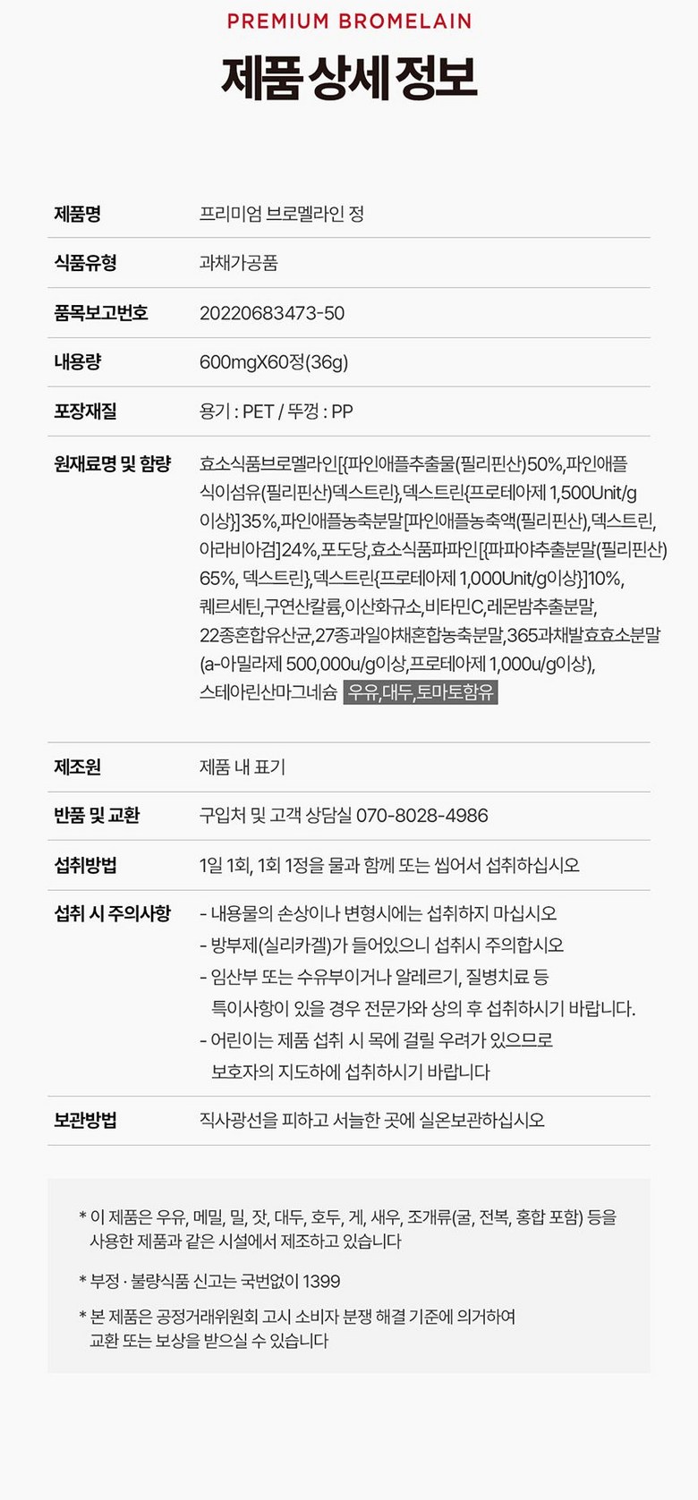 | 원재료명 및 함량 | 상품 상세페이지 참조 | 영양성분 | 상품 상세페이지 참조 |