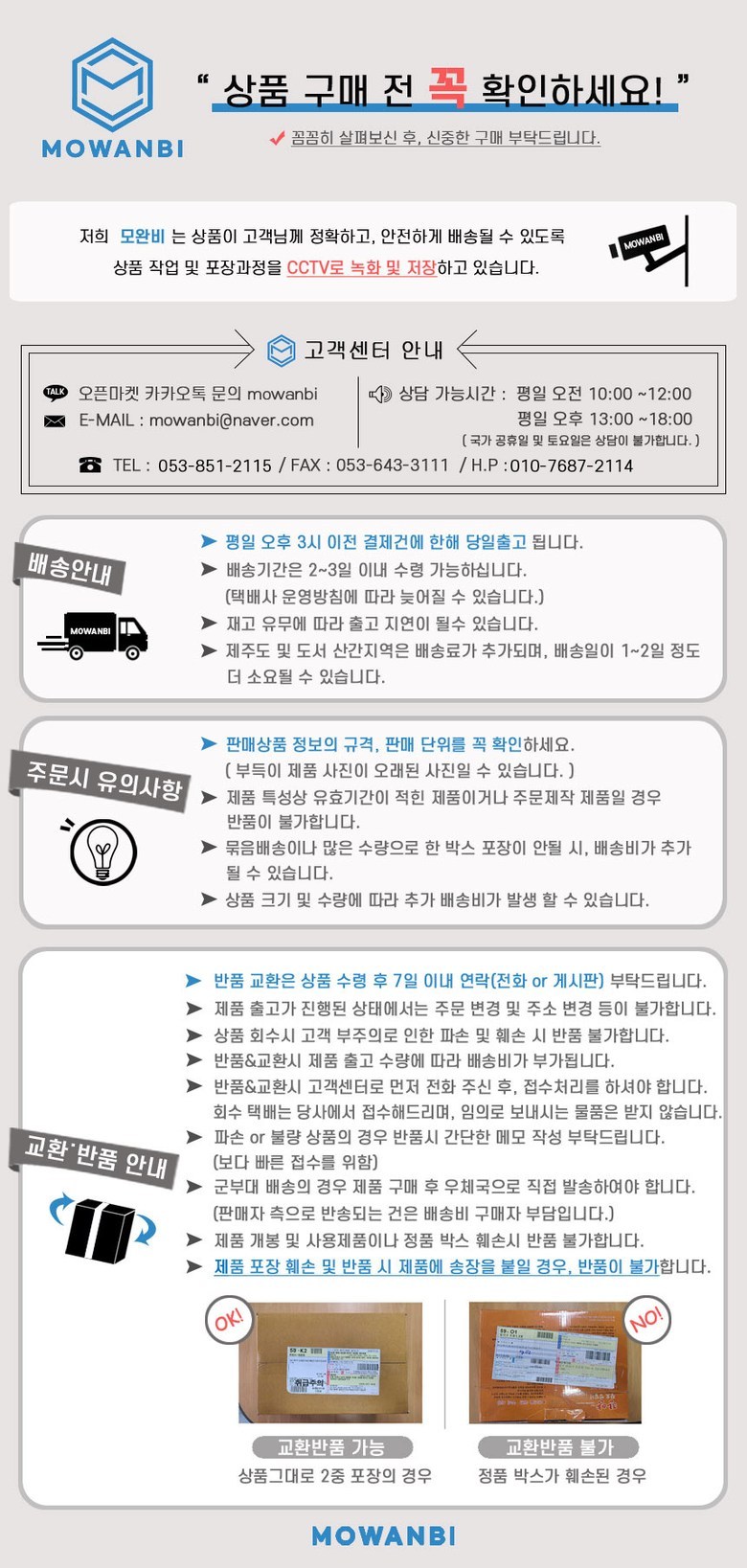 - ㆍ교환/반품에 관한 일반적인 사항은 판매자가 제시사항보다 관계법령이 우선합니다.