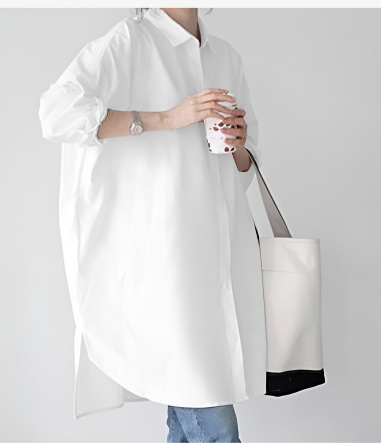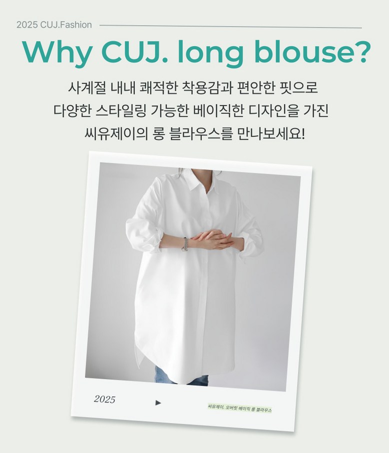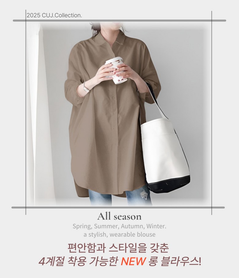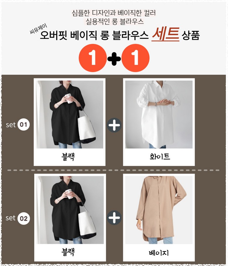 씨유제이 여성용 긴팔 롱 블라우스 오버핏 베이직 셔츠 세트