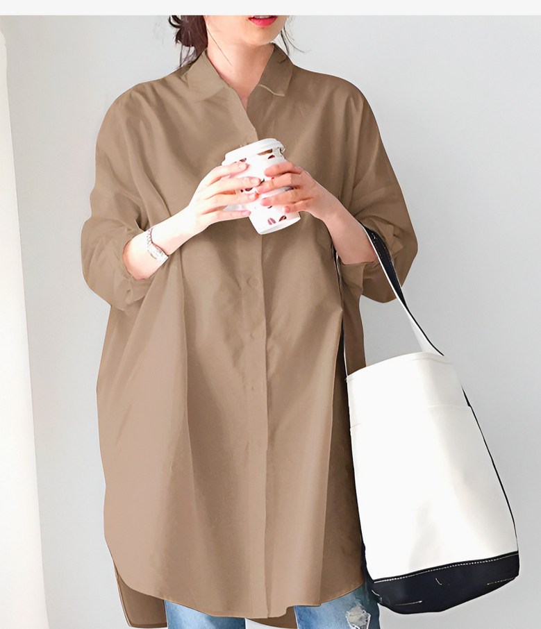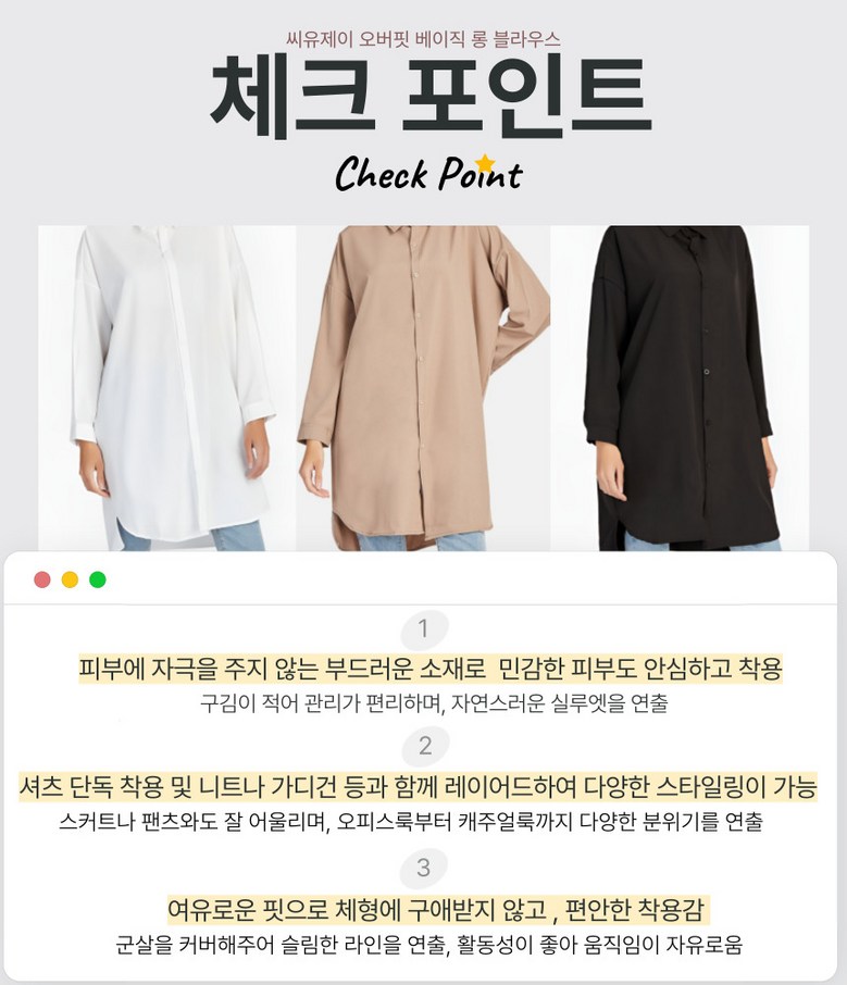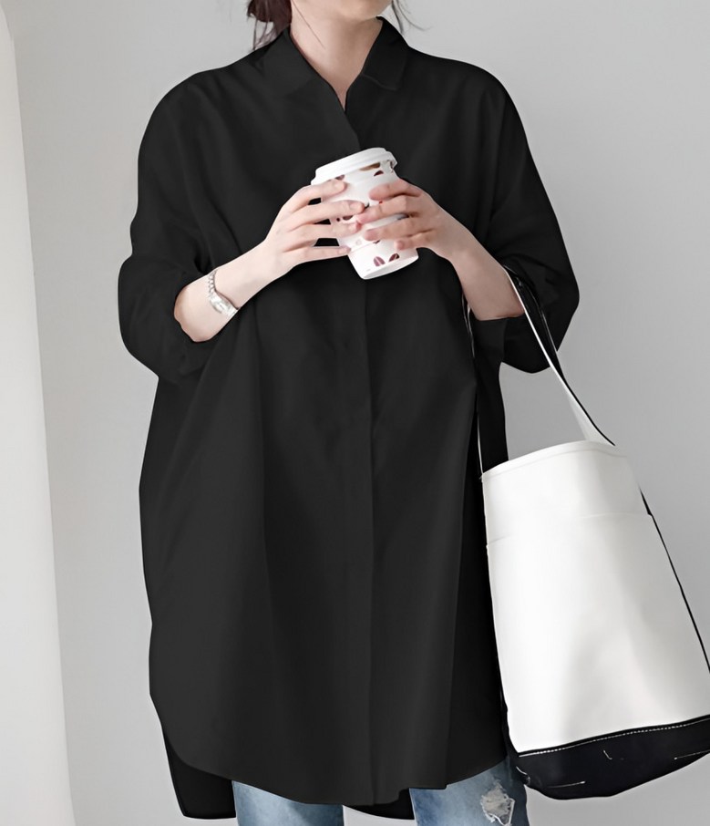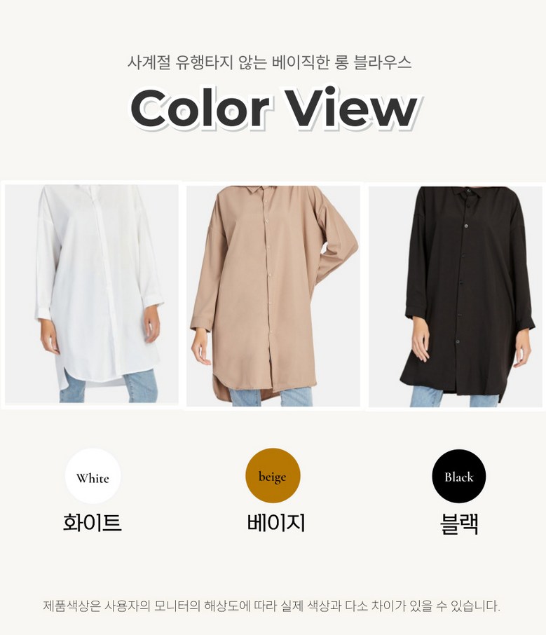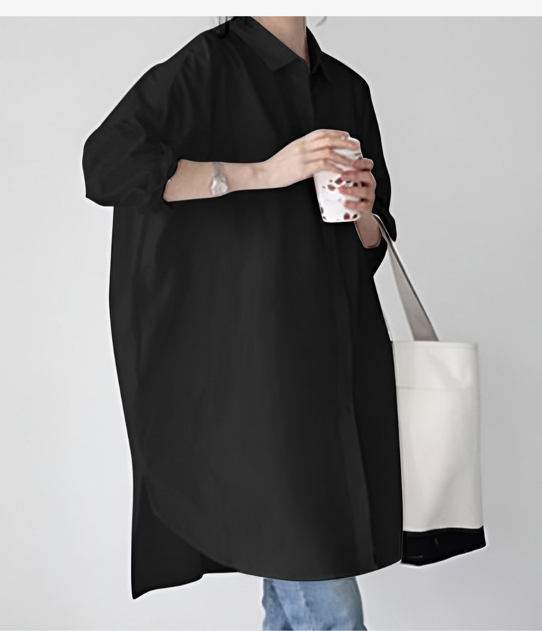 씨유제이 여성용 긴팔 롱 블라우스 오버핏 베이직 셔츠 세트