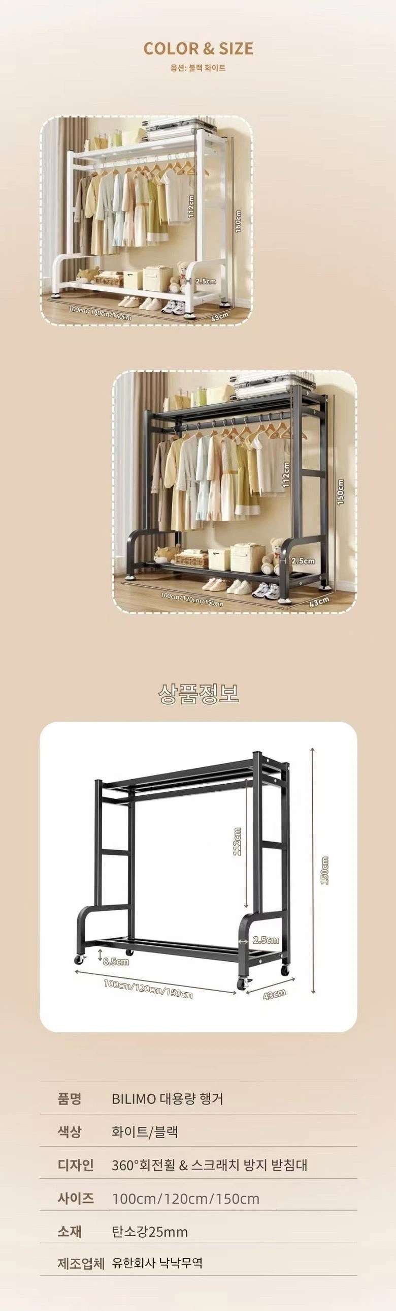 | 품명 및 모델명 | 행거-튼튼한 철제 스탠드 2단 | 인증/허가 사항 | 인증 필요 사항 없음 |