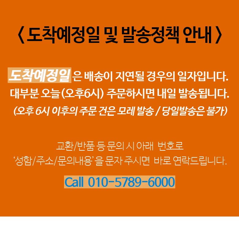 | 배송기간 | ㆍ도서산간 지역 등은 배송에 3-5일이 더 소요될 수 있습니다. - 천재지변, 물량 수급 변동 등 예외적인 사유 발생 시, 다소 지연될 수 있는 점 양해 부탁드립니다. | ||