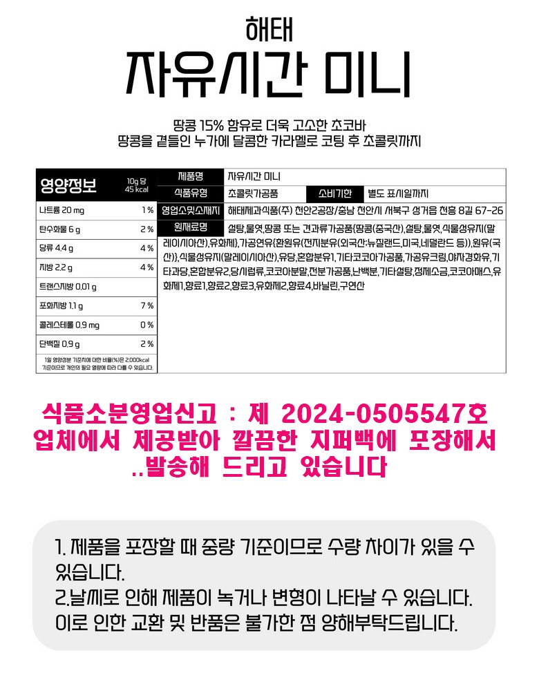| 생산자 및 소재지 | 상품 상세페이지 참조 | 제조연월일, 소비기한 또는 품질유지기한 | 상품 상세페이지 참조 |
