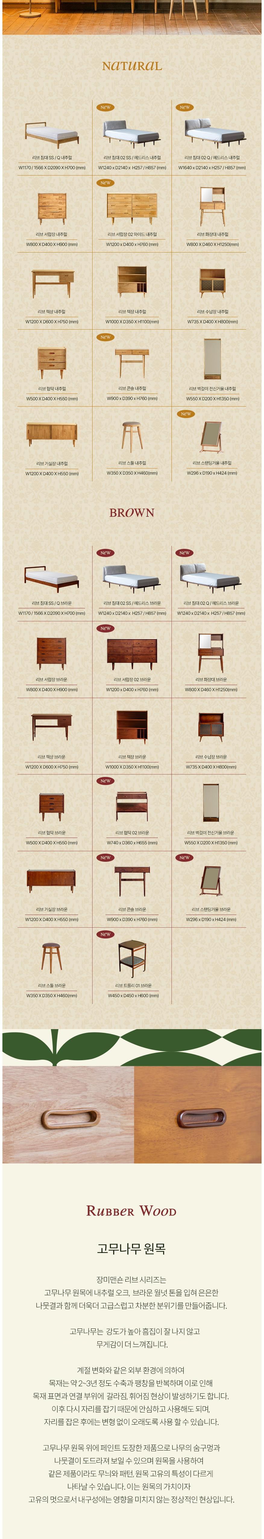 | 주요 소재 | 고무나무 원목 | 제조자(수입자) | (주)장미맨숀/(주)장미맨숀 |