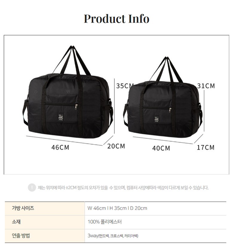 - 보스턴백 용도: 여행/다용도