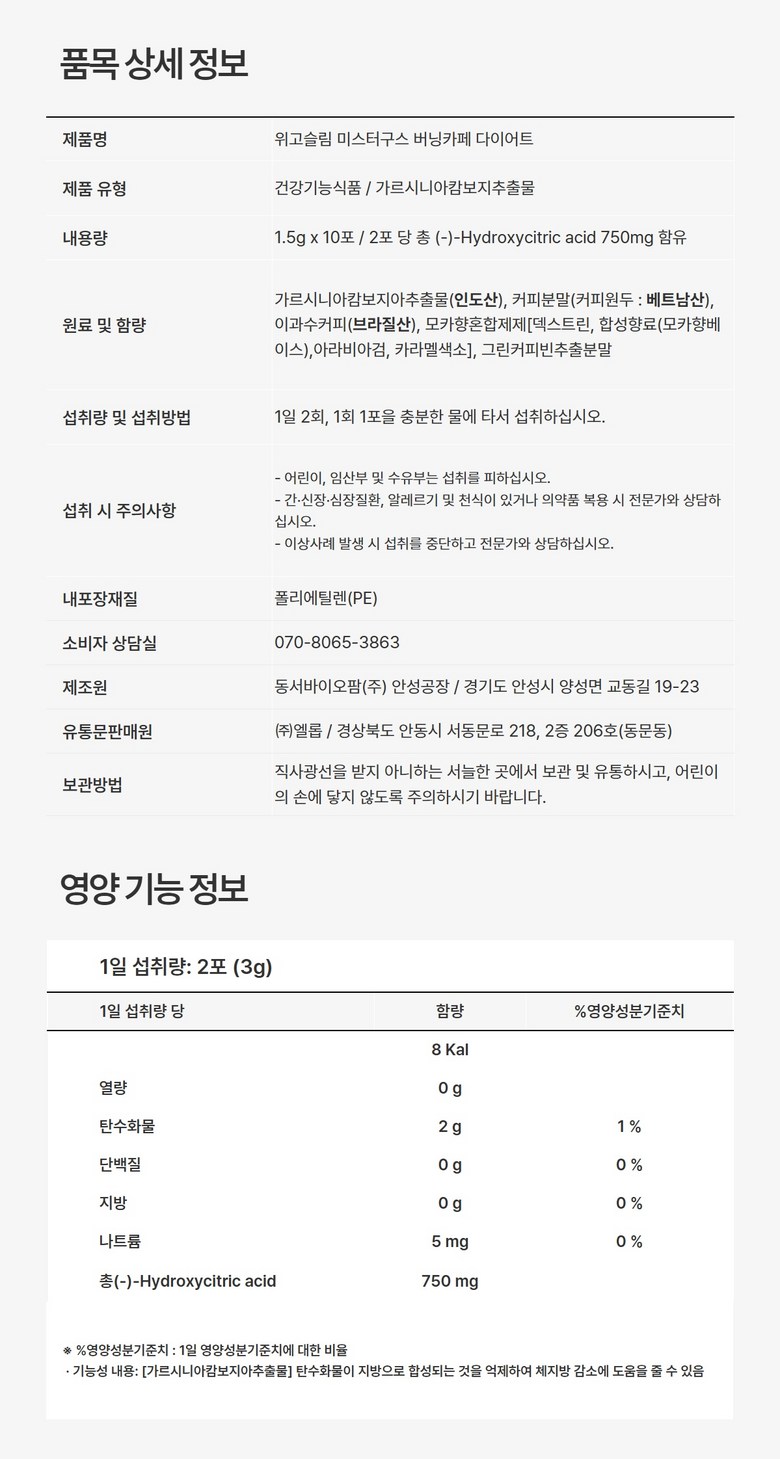 | 원료명 및 함량 | 상품 상세페이지 참조 | 영양정보 | 상품 상세페이지 참조 |