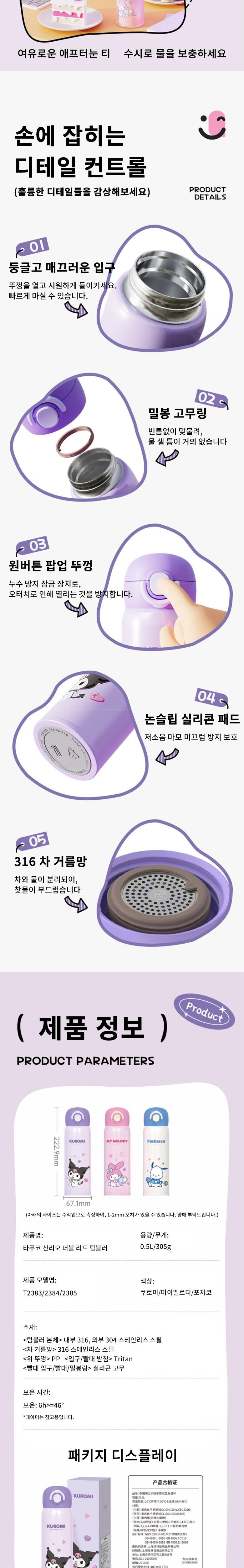 타푸코 산리오 더블 리드 텀블러 T238