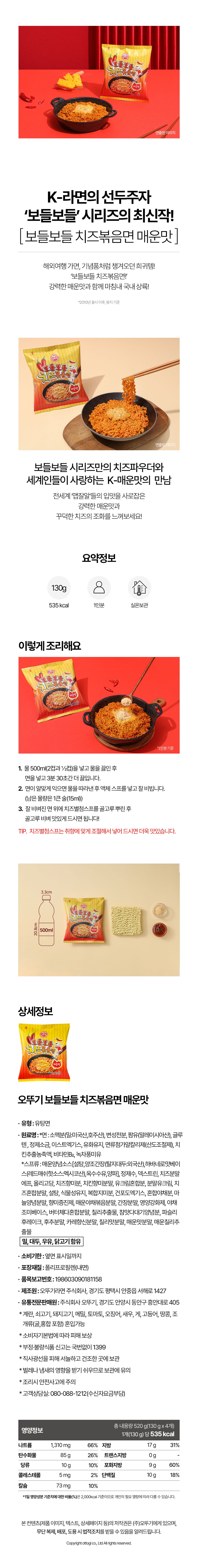 | 제품명 | 오뚜기 보들보들 치즈볶음면 매운맛 | 식품의 유형 | 유탕면 |