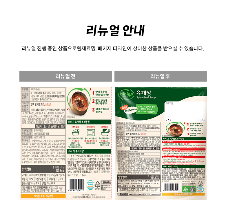 | 제품명 | bibigo비비고육개장 | 식품의 유형 | 컨텐츠 참조 |