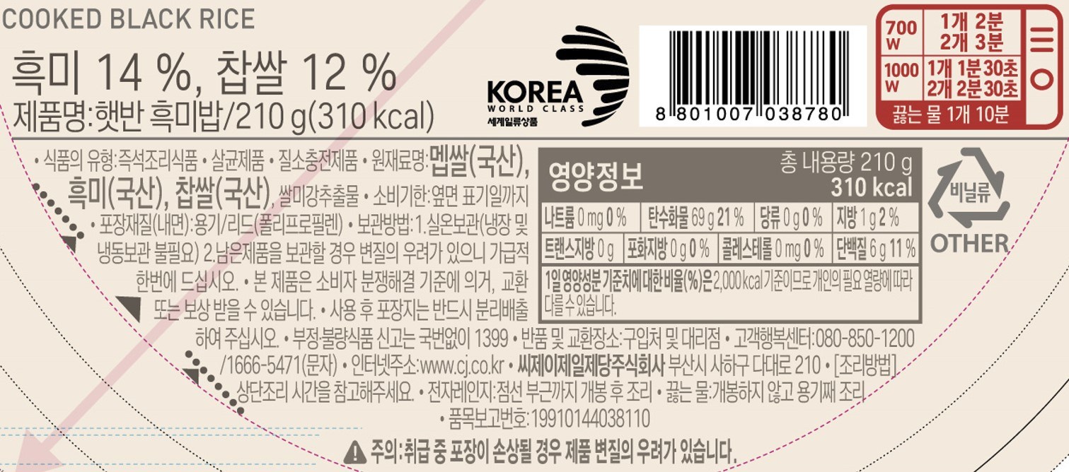 - 즉석밥 종류: 흑미밥