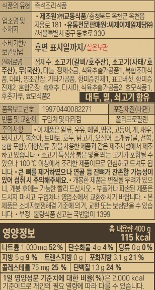 | 생산자 및 소재지 | 컨텐츠 참조 | 제조연월일, 소비기한 또는 품질유지기한 | 업데이트 예정 |