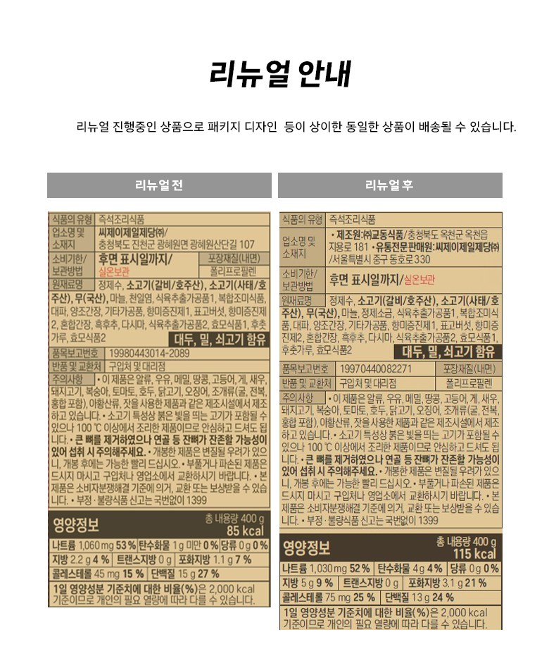 | 제품명 | bibigo 비비고갈비탕 | 식품의 유형 | 컨텐츠 참조 |