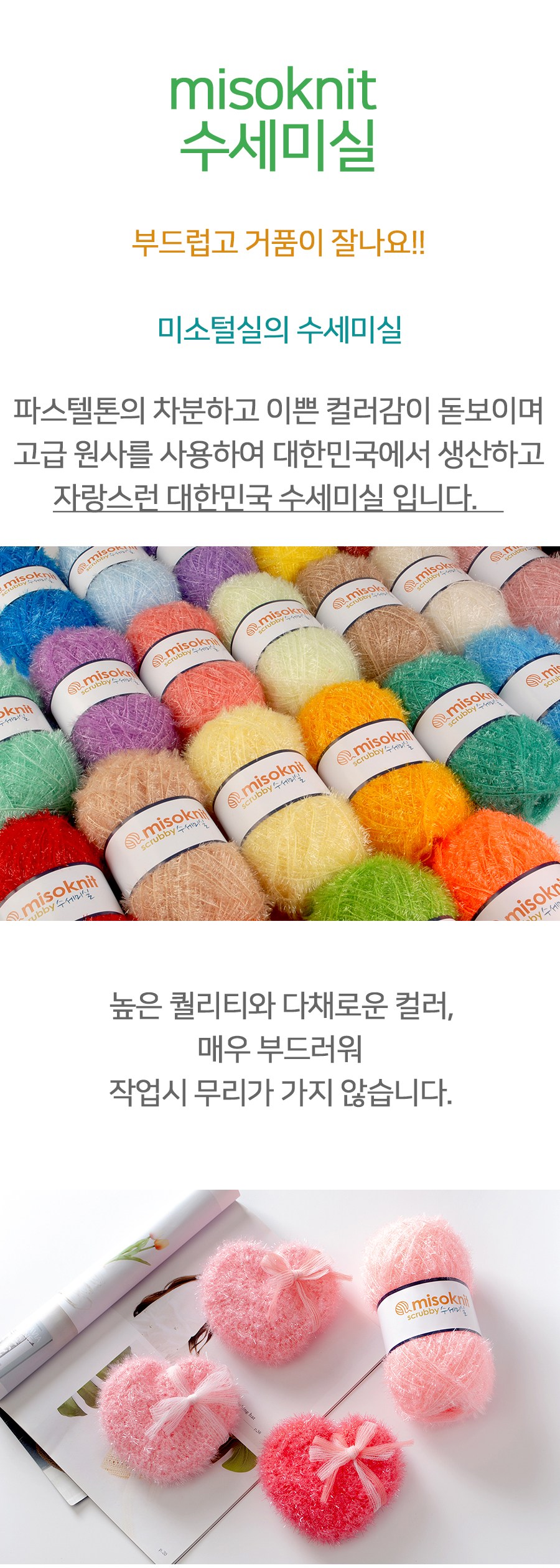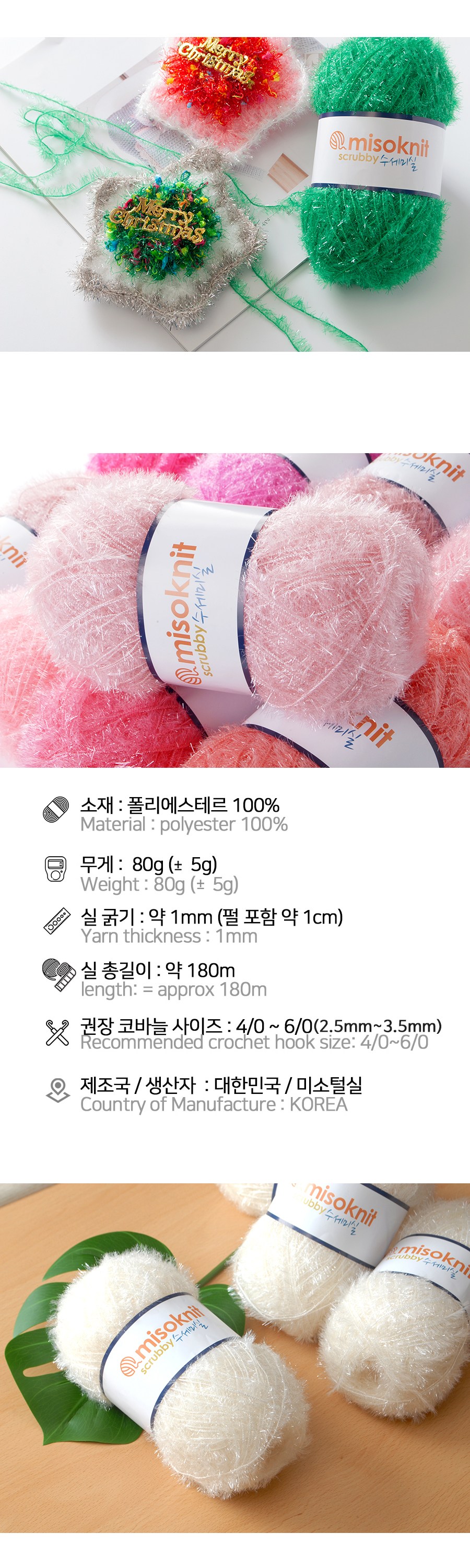 | 제조국(원산지) | 대한민국 | 제조자(수입자) | 미소털실 |
