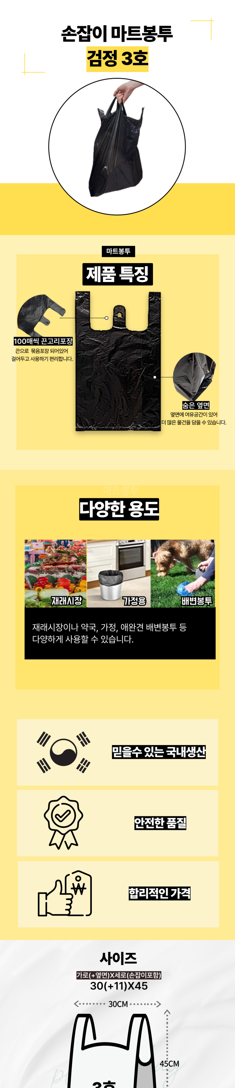 | 품명 및 모델명 | 원s마트 손잡이 비닐봉투3호 검정 | 재질 | HDPE |