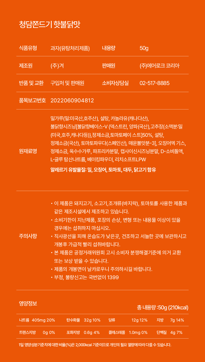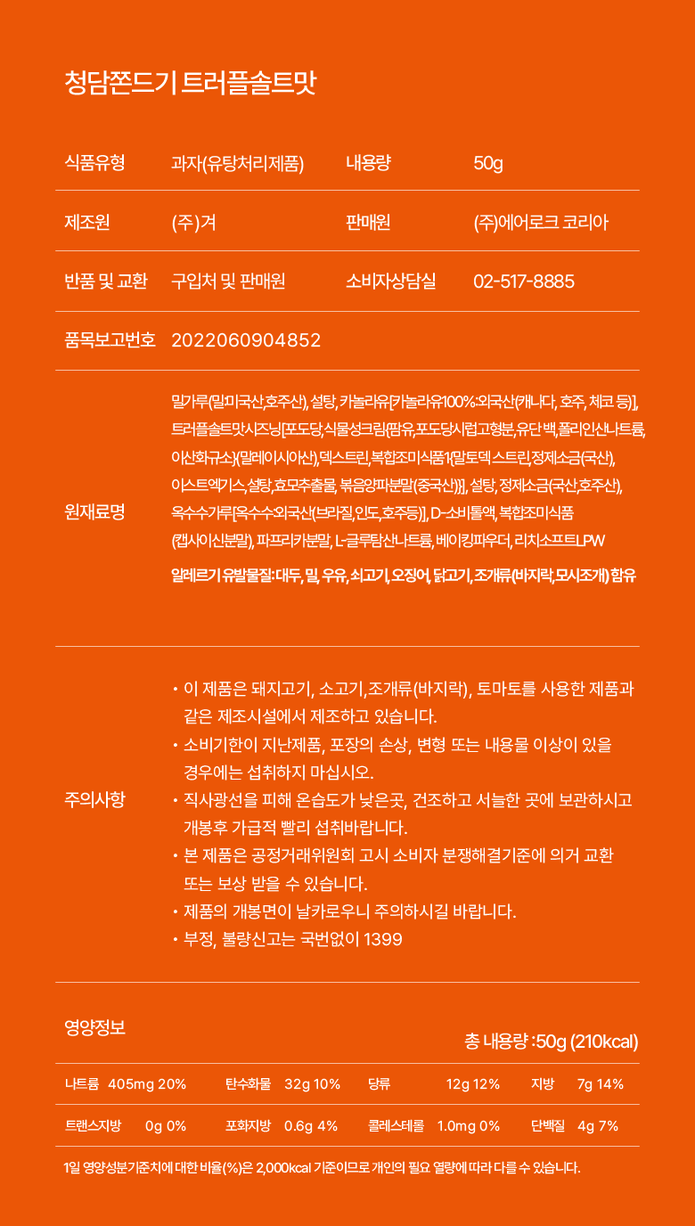 | 제품명 | 상품 상세페이지 참조 | 식품의 유형 | 상품 상세페이지 참조 |