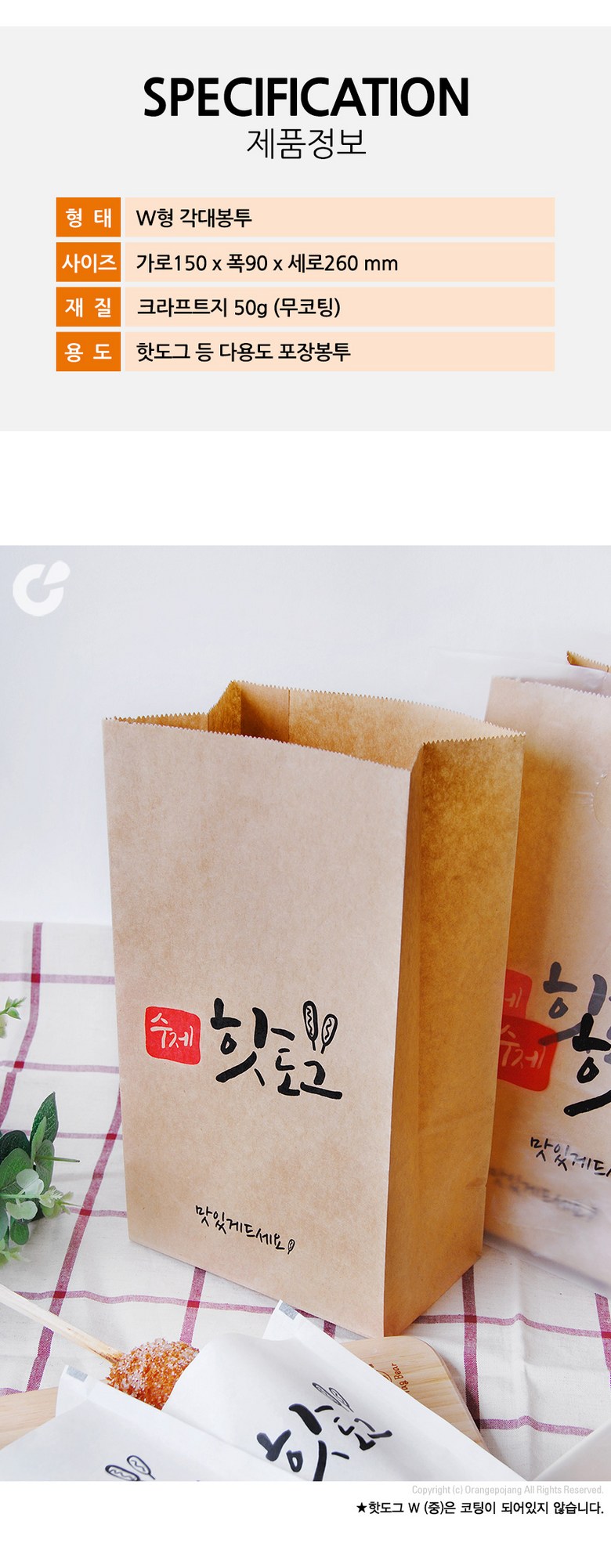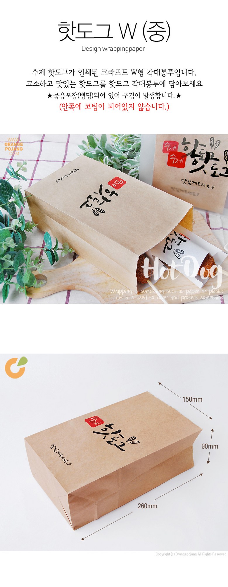 오렌지포장 핫도그봉투 핫도그 W (중), 1세트, 1000개