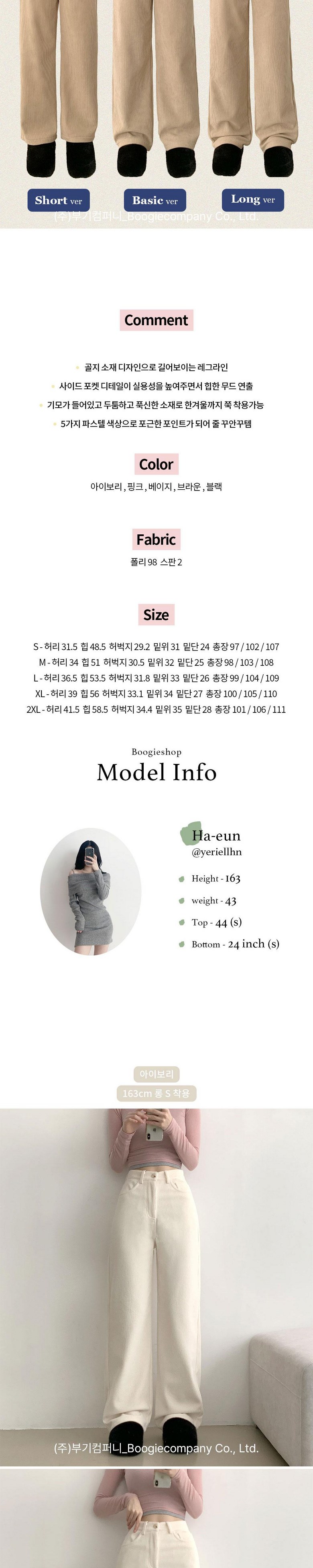 | 제품 소재 | 폴리98 스판2 | 색상 | 블랙 아이보리 베이지 브라운 핑크 |